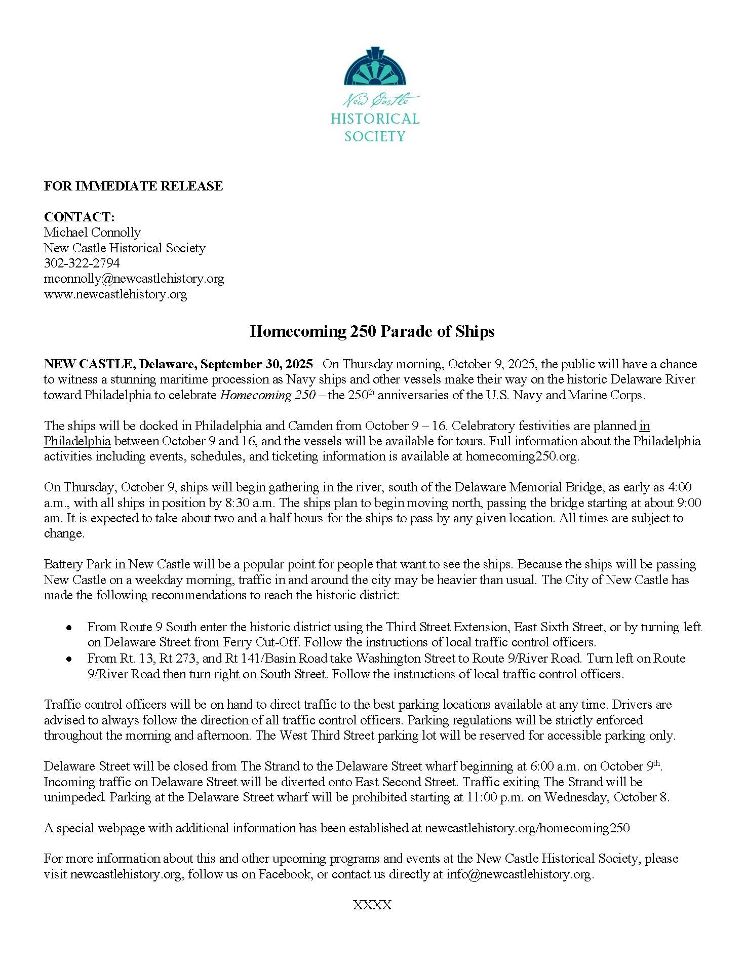 Press Release – Homecoming 250 Parade of Ships on the Delaware