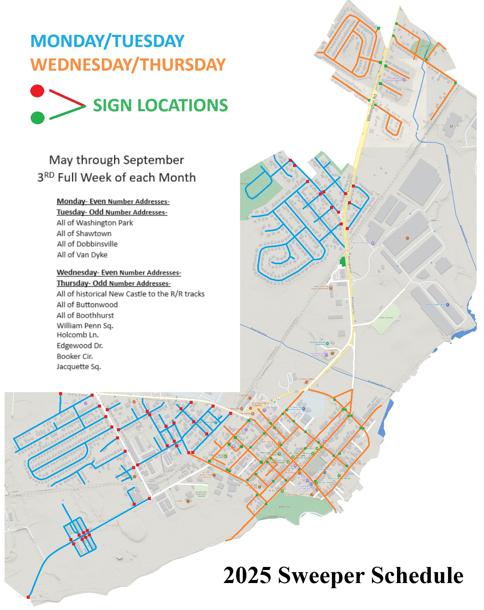 Additional services provided by Public Works include fall leaf collection, street sweeping, pavement marking, drainage maintenance and numerous other services to enhance the quality of life for the residents in the City of New Castle.